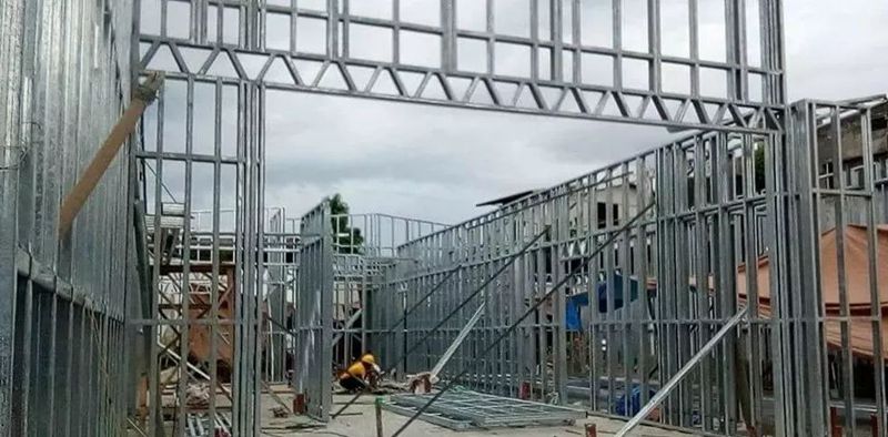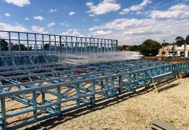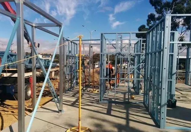 屋架與墻體同步施工,更快更安全。將需要在高空作業(yè)的工作轉(zhuǎn)為正常作業(yè),提高效率。該工作的核心是冷彎薄壁型鋼加工設(shè)備的精度。